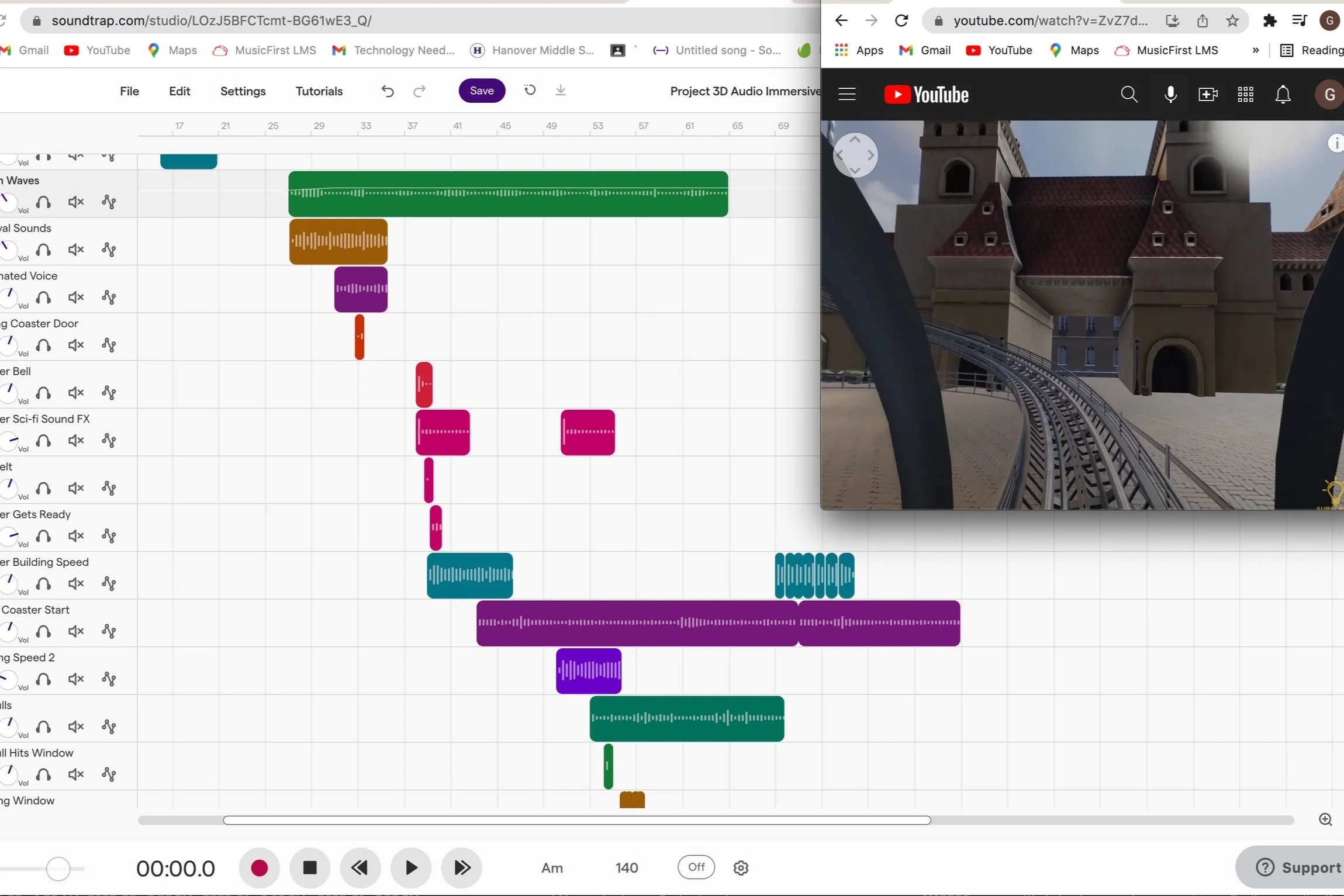 3.) Have students work together, studying the location of each sound, creating its spatial effect and adding a contrasting soundtrack of music to specific time points